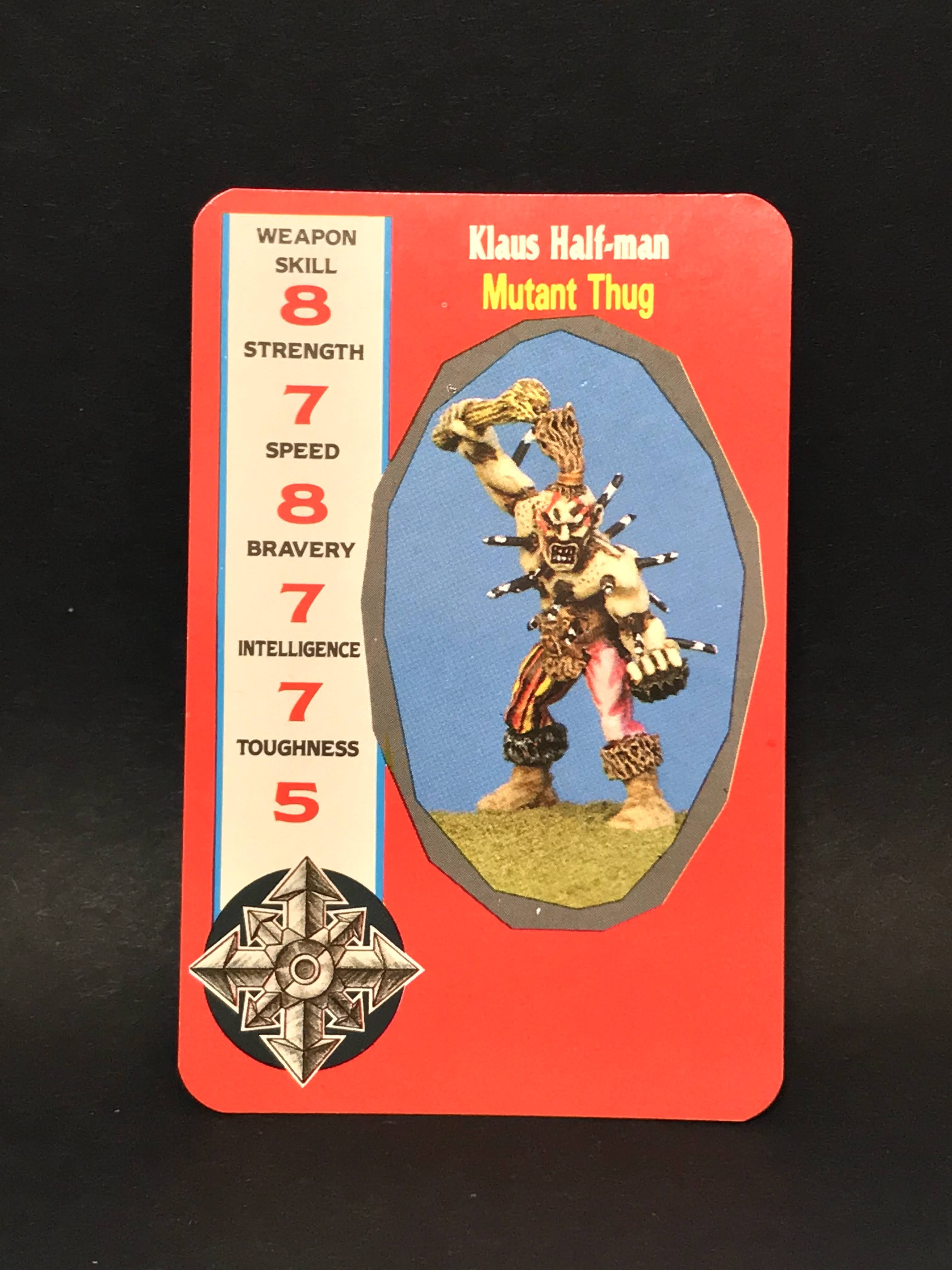 Back in the long long ago before covid and the internet I spent a summer at my granny’s with a pack of chaos combat cards. I spent hours looking at each card but my favourite by far was Klaus Half-man mutant thug. I never did buy any of the minis thinking that the painting and converting were beyond my abilities focusing my time and money on the undead and skaven instead.